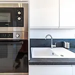 Ein Bügeleisen/Bügelbrett und eine Klimaanlage sind ebenfalls vorhanden, und die Zimmer verfügen über einen Balkon und einen Essbereich. Ein Kühlschrank, ein Herd und Glasgeschirr sind hier ebenfalls vorhanden.
